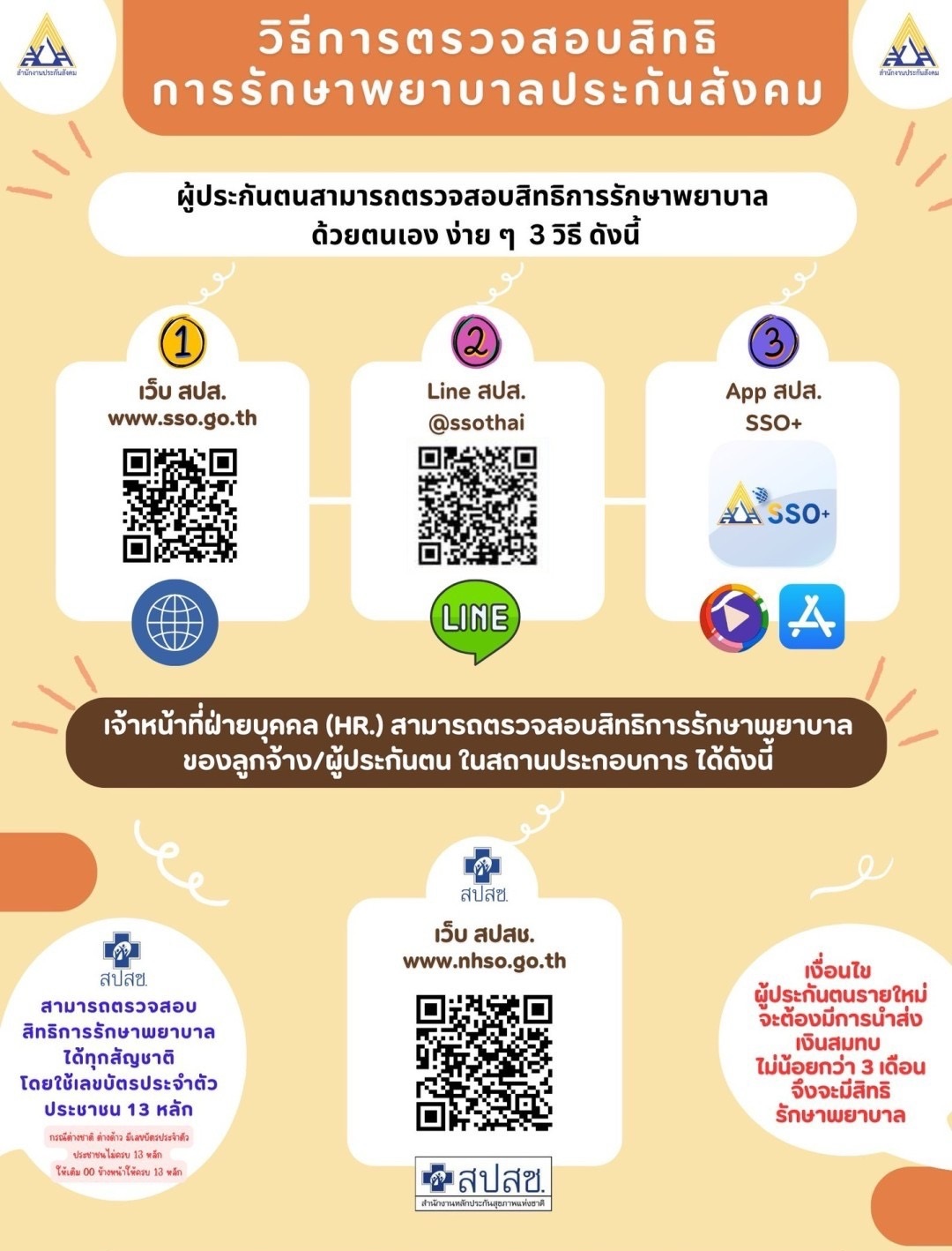 • ทำรายการผ่าน Application SSO Connect ดาวน์โหลดทำรายการผ่าน https://ssoconnect.mywallet.co รายชื่อสถานพยาบาลประกันสังคมประจำปีแยกรายจังหวัด" เพื่อให้ประชาชนและผู้ประกันตนสามารถตรวจสอบข้อมูล